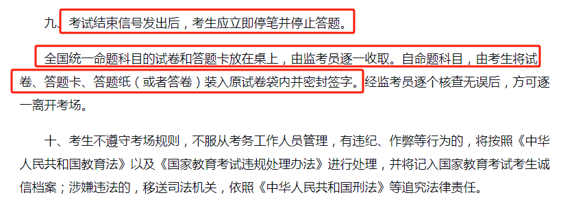 考试结束后,要立即停笔停止答题,尤其老师再三强调要停笔的时候,一定要停笔。
