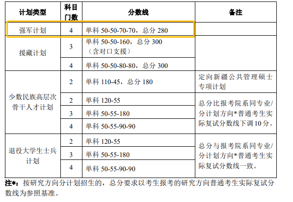 所以强军计划的面向群体是已经在部队工作且有考研打算的同学,院校在读或其他行业在职群体就不用看这条了。